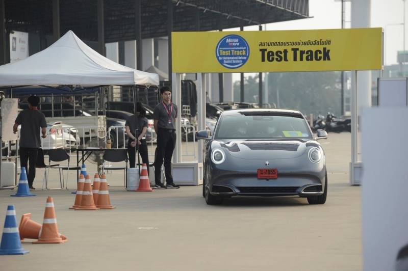 พื้นที่ทดลองขับรถรุ่นที่ผู้ชมสนใจ โดยมีมาตรการคุมเข้มพิเศษเพื่อความปลอดภัย บริเวณด้านหลังอาคารชาลเลนเจอร์