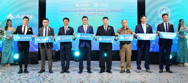 ซึ่งงานเปิดตัวโชว์รูมครั้งนี้มี Mr. Feng Chang Jin (เฟิ๋ง เฉิง จิน) Vice President of Vice President of Harmony new energy auto service Thailand และ Mr. Jin Rongbo (จิน หลงปัว) Vice President of AION Thailand พร้อมด้วยกรรมการบริหาร รองประธาน และประธานเจ้าหน้าที่บริหาร เจ้าหน้าที่ปฏิบัติการของ Harmony new energy auto service Thailand กลุ่มตัวแทนจำหน่ายรถยนต์พลังงานใหม่ชั้นนำของจีน และแขกผู้มีเกียรติ ร่วมตัดริบบิ้นเปิดโชว์รูม