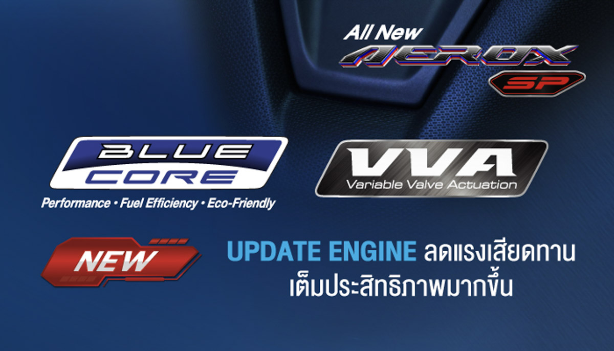 All New Yamaha AEROX SP มาพร้อมเครื่องยนต์ Blue Core ขนาด 155 ซีซี เวอร์ชันปรับปรุงใหม่ ที่เน้นทั้งความแรงและความประหยัด ด้วยการลดแรงเสียดทานภายในเครื่องยนต์ เสริมด้วยระบบวาล์วแปรผัน VVA ที่ช่วยให้การเร่งแซงต่อเนื่องในทุกช่วงความเร็ว เพิ่มความแข็งแรงด้วยลูกสูบแบบ Forged และระบบดันโซ่ราวลิ้นแบบไฮดรอลิก ช่วยยืดอายุการใช้งานและเพิ่มความเสถียรของเครื่องยนต์