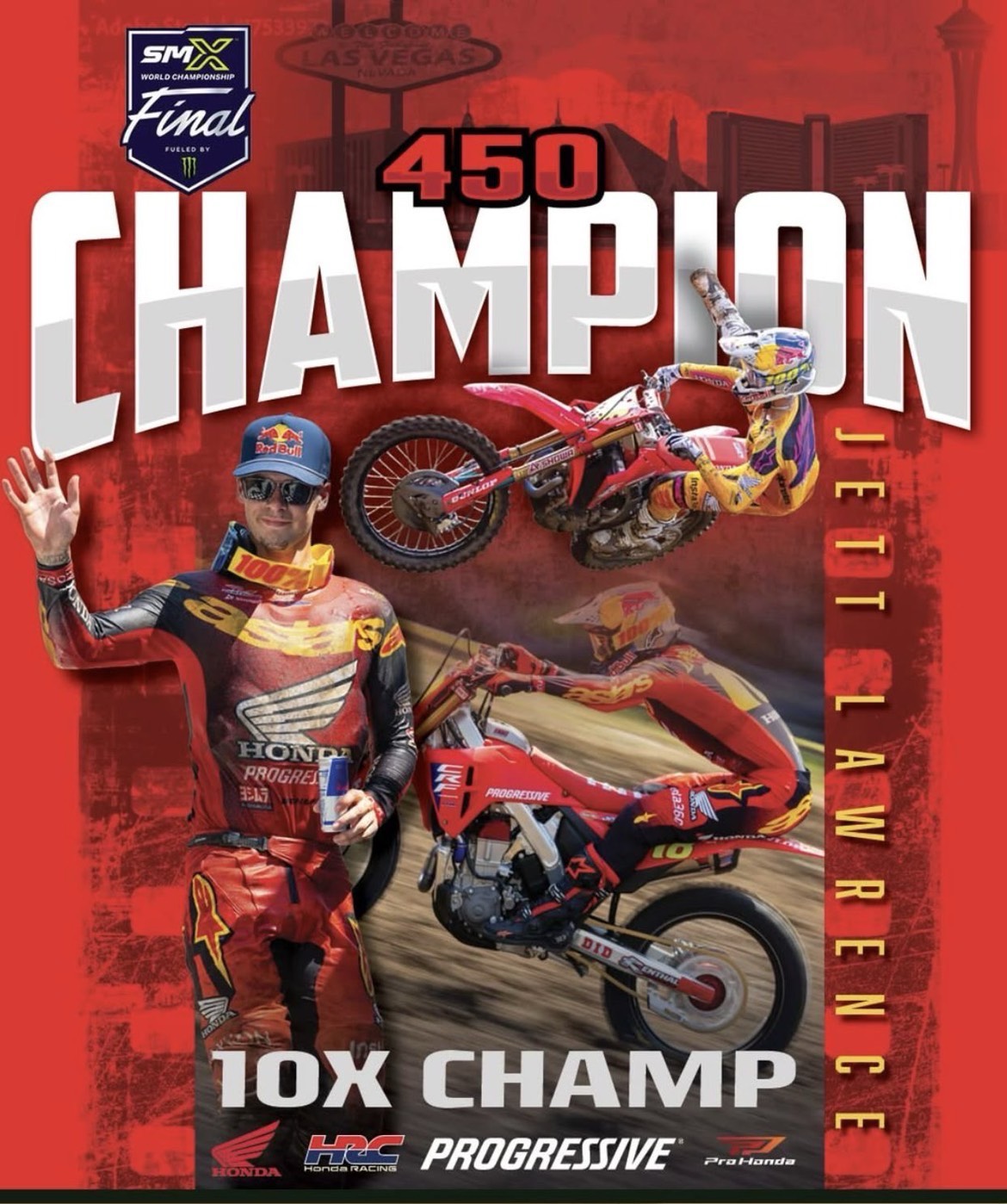 “ฮอนด้า” ประกาศความยิ่งใหญ่สุดเหนือชั้นในการแข่งขันรอบไฟนอล ศึกซูเปอร์โมโตครอสชิงแชมป์โลก 2025 ในโปรแกรมสนาม 3 AMA Super Motocross (AMA SMX 2025) ที่ลาสเวกัส มอเตอร์ สปีดเวย์ โดยนักแข่งฮอนด้าคว้าชัยชนะพร้อมเหมาแชมป์โลก 2 รุ่นท็อป จากผลงานของ “เจ็ตต์ ลอว์เรนซ์” หมายเลข 1 กับรถแข่ง Honda CRF450R ในคลาส 450SMX และ “โจ ชิโมดะ” หมายเลข 30 นักบิดชาวญี่ปุ่น กับรถแข่ง Honda CRF250R ในคลาส 250SMX