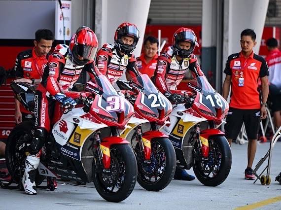 รุ่น ซูเปอร์สปอร์ต 600 ซีซี (SS600) ดาวรุ่งนักบิดไทยและยอดรถแข่ง Honda CBR600RR 2025 ทำผลงาน Combined Practice กับนักแข่งระดับท็อปของเอเชีย “มิกซ์” ธนัช ละอองปลิว หมายเลข 31 ทำเวลาต่อรอบดีที่สุด 2.10.855 นาที รั้งท็อป 6 “ไฮเปค” กฤษฎา ธนะโชติ หมายเลข 18 ทำเวลาต่อรอบดีที่สุด 2.13.010 นาที รั้งอันดับที่ 14 และ “ข้าวกล้อง” จักรีภัทร พฤฒิสาร หมายเลข 20 ทำเวลาต่อรอบที่ดีที่สุด 2.13.147 นาที