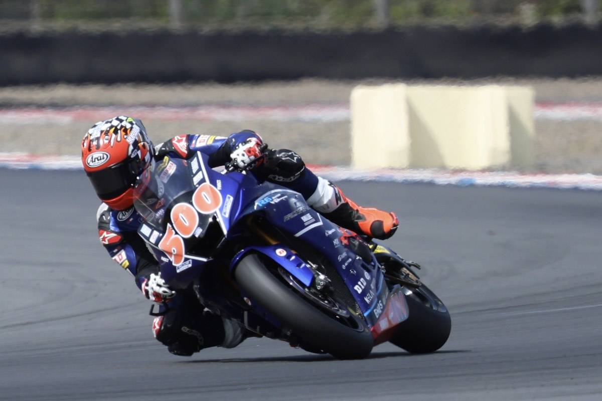 ในรุ่น ซูเปอร์สปอร์ต 600 ซีซี “ตี” อนุภาพ ซามูล ยอดนักบิดไทยจาก ยามาฮ่า ไทยแลนด์ เรซซิ่งทีม ที่มีคะแนนเป็นรองจ่าฝูงบนตารางแชมเปียนชิพ ก่อนเข้าสู่สุดสัปดาห์นี้ ได้ออกตัวจากกริดที่ 7 และเริ่มต้นเรซอย่างยอดเยี่ยม เกาะกลุ่มหน้าได้เหนียวแน่น ทว่านักบิดไทยเจ้าของหมายเลข 500 โชคร้ายสุดๆ เมื่อโดนคู่แข่งชนท้ายเข้าเต็มๆ ที่โค้ง 16 ในรอบแรก ส่งผลให้ล้มลงบนแทร็กร่วงลงไปท้ายแถว