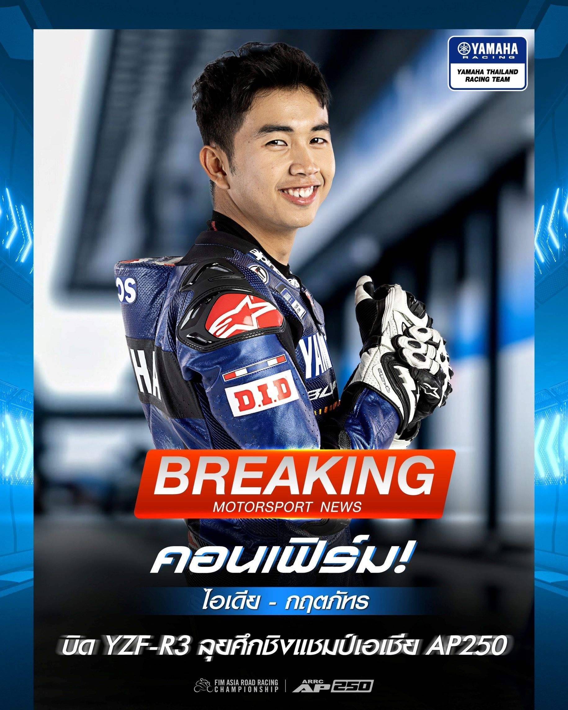 ยามาฮ่า ไทยแลนด์ เรซซิ่ง ทีม ยอดทีมแข่งไทยประสบการณ์ระดับโลก ประกาศอย่างเป็นทางการส่งนักบิดดาวรุ่งเลือดใหม่ของทีมอย่าง “ไอเดีย” กฤตภัทร เขื่อนคำ ลุยศึก เอเชีย โร้ด เรซซิ่ง แชมเปียนชิพ 2025 (ARRC 2025) เพื่อไล่ล่าแชมป์ประจำทวีปในคลาส เอเชีย โปรดักชั่น 250 ในฤดูกาลนี้