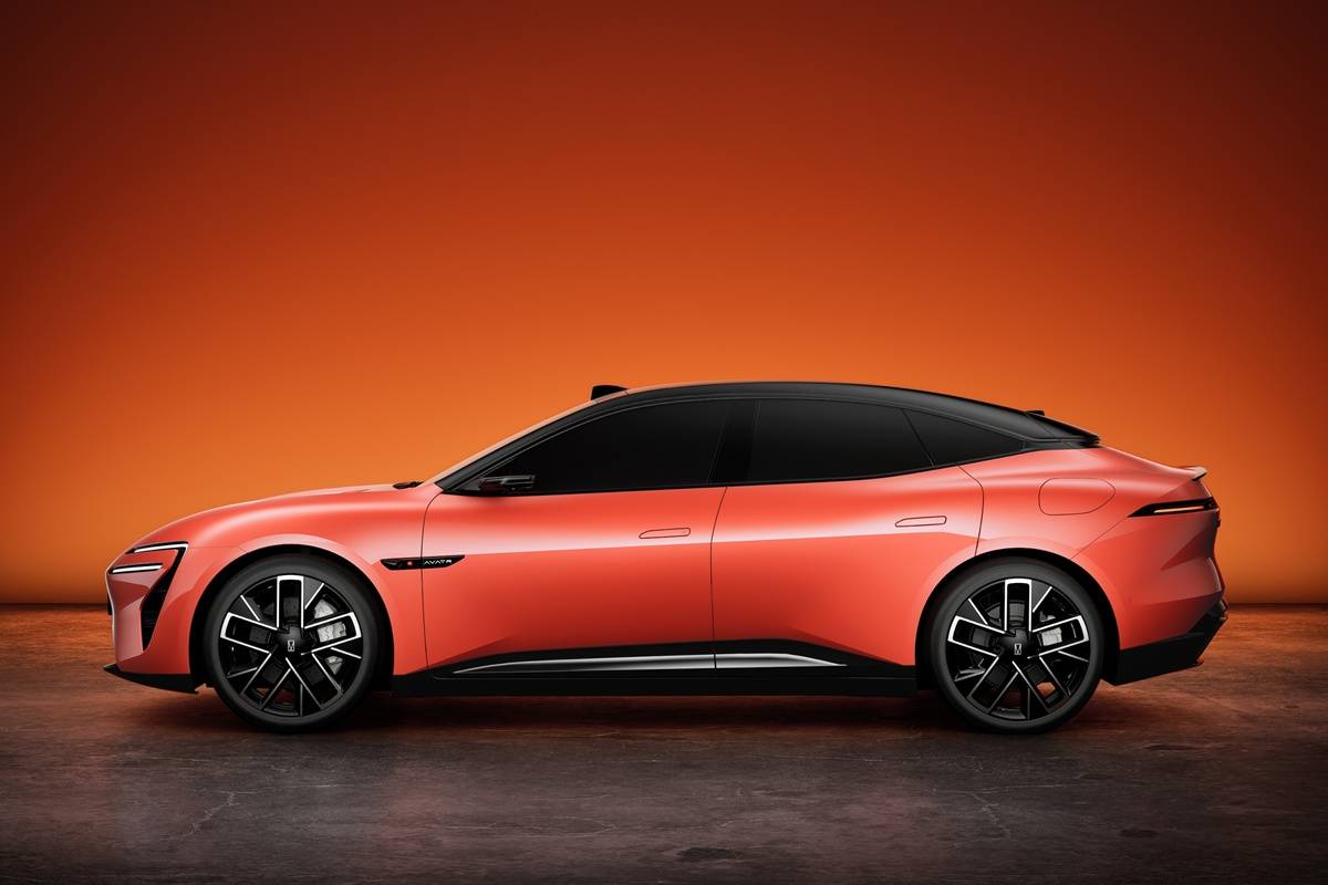 ด้านข้างเด่นด้วยที่เปิดประตูเรียบเนียนกับตัวถัง กระจกมองข้างพร้อมไฟเลี้ยวทรงสากลและแบบกล้องมองภาพแทนที่กระจกมองข้างเป็นออปชันเสริม หลังคารถออกแบบมาโค้งลู่ลม กระจกรถแบบไร้รกอบ Frameless กระจกหลังคารถออกแบบยาวจรดถึงท้ายเสริมกระจกหลังขนาดเล็กในชุดฝาท้ายติดตั้งสปอยเลอร์หลังทรงหางเป็ดและมีขนาดใหญ่ยาว