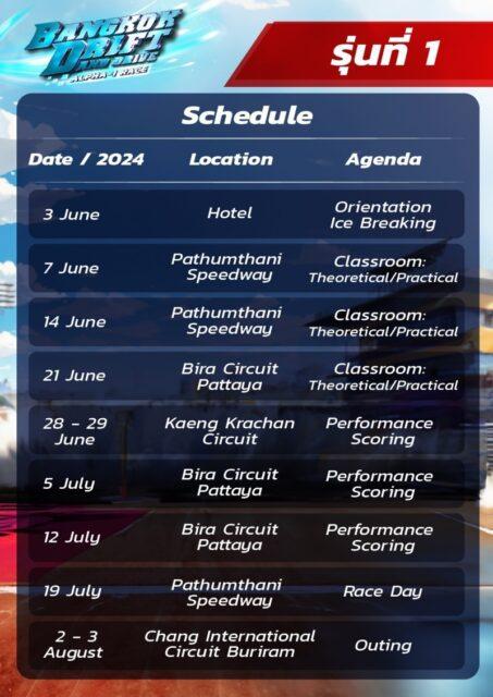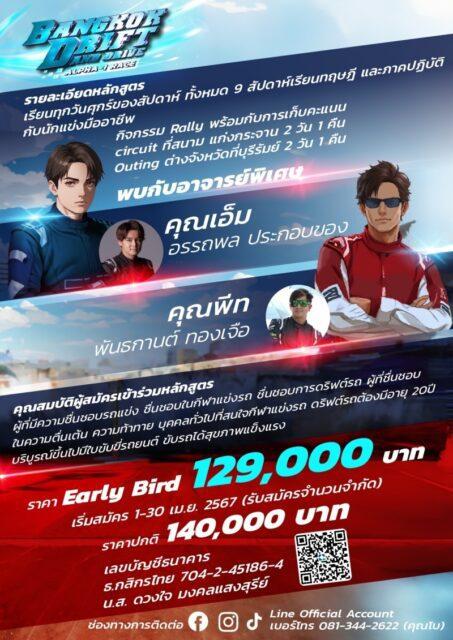สำหรับผู้ที่สนใจ สามารถสมัครเข้ามาเป็น Bangkok Drift and Drive : Alpha-1 Race รุ่น 1 กันได้ โดยจะมีการเรียนทุกวันศุกร์ของสัปดาห์ ทั้งหมด 9 สัปดาห์ เริ่ม 3 มิถุนายน – 3 สิงหาคม 2567