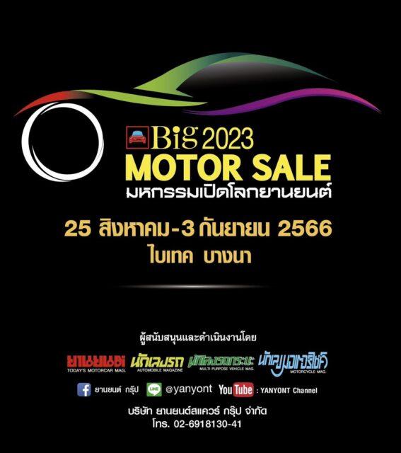 “Big MOTOR SALE 2023 เทศกาลแสดงยานยนต์และจำหน่าย” เดินหน้าผนึกกำลังค่ายรถชั้นนำ ทั้งรถยนต์ รถอเนกประสงค์ ยานยนต์ไฟฟ้า และมอเตอร์ไซค์ เตรียมความพร้อมตอบโจทย์ทุกความต้องการ อยากได้รถ…จบในงานเดียว 25 ส.ค. – 3 ก.ย. 66 ฮอลล์ 101 – 104 ศูนย์นิทรรศการและการประชุมไบเทค บางนา