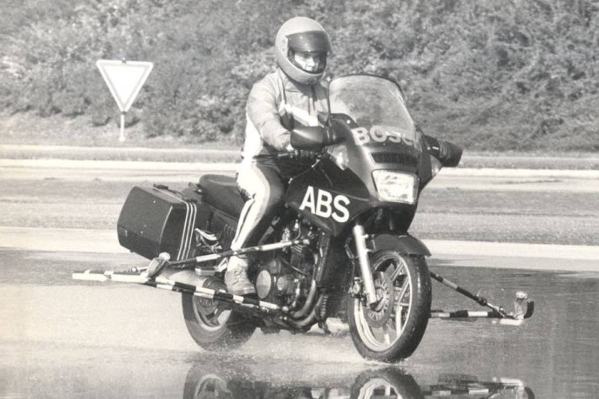 Bosch ระบุว่ามอเตอร์ไซค์รุ่นแรกที่ใช้ ABS คือ Kawasaki GPZ1100 ในปี 1995 (บางแหล่งชี้ไปที่ BMW K100 ปี 1988) ซึ่งถือเป็นก้าวสำคัญทางวิศวกรรม โดยการพัฒนา ABS สำหรับสองล้อยากกว่าสี่ล้อ เพราะ