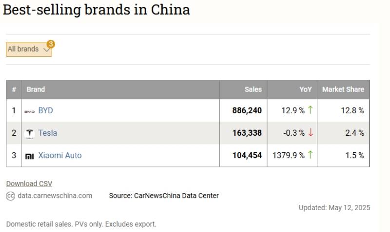 ในขณะเดียวกัน BYD ยังคงครองความโดดเด่น ในเดือนเมษายน บริษัทสามารถขายแซงหน้า Tesla ในยุโรปได้เป็นครั้งแรก และเป็นผู้นำในจีนอย่างมั่นคง ยอดขายของ Tesla ในประเทศจีนลดลง 60% จากเดือนมีนาคมถึงเมษายน เหลือ 28,731 คัน