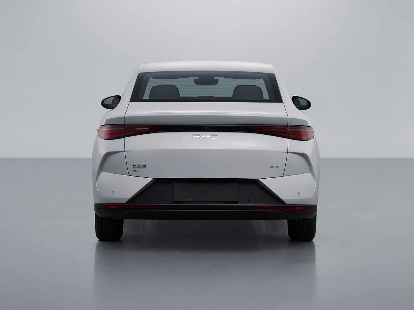 ด้านข้างหรูด้วยกรอบกระจกสีดำในกระจกรถทรงโอเปร่า กระจกมองข้างพร้อมไฟเลี้ยว ที่เปิดประตูดึงก้านสีเดียวกับตัวรถ ไฟท้าย LED แนวยาว ติดตรา BYD บนขอบไฟท้ายเสริมหรูด้วยกันชนหลังพร้อมช่องใส่ป้ายทะเบียนท้ายและไฟทับทิมสะท้อนแสงในตัวแบบแนวนอน