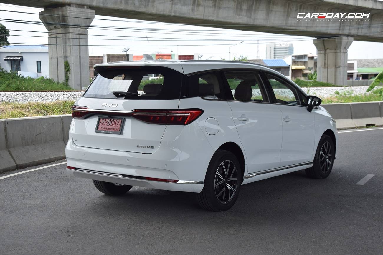 BYD M6 รุ่นท็อป Extended มารอบนี้ประทับใจหลายๆอย่างจาก BYD e6 ทั้งหน้าตาภายในที่สง่างามขึ้น 6 ที่นั่ง ออปชันมากกว่าพร้อมพลังเหนือกว่า e6 ถึง 204 แรงม้า แรงบิด 310 นิวตันเมตร แบตอึดขึ้นวิ่งไกล 500 กว่ากิโลเมตร แซงตอบสนองฉับไวแม้ไม่ปรู๊ดปร๊าดมากพร้อมช่วงล่างอิสระ 4 ล้อ เซตนุ่มหนึบกว่าเดิมแต่เบรกทำงานฉับไวเกินไป