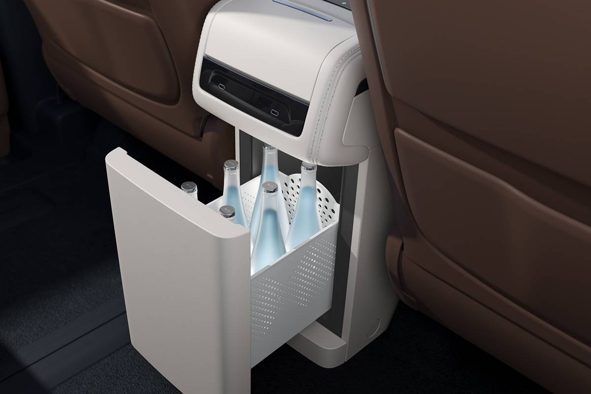 มีช่องสำหรับผู้โดยสารด้านหลังใช้งานระหว่างเบาะนั่งแถวที่ 2 ทั้งสองตัวมีทางเดินเล็กๆ สำหรับเข้าสู่แถวที่ 3 ผู้โดยสารแต่ละคนในแถวที่ 3 ดูเหมือนว่าจะมีที่รองศีรษะที่ปรับได้ 3 จุด มีตู้เย็นบริเวณตอนที่ 2 เก็บอุณหภูมิความเย็นตั้งแต่ -6 จนถึง 6℃ และอุ่นความร้อนที่อุณหภูมิ 35-50℃