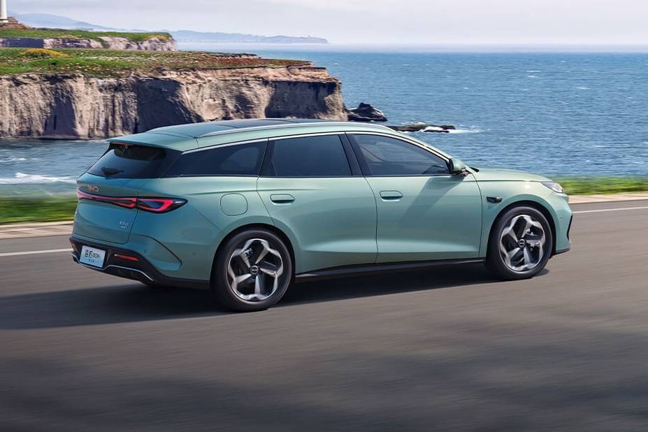 ด้านท้ายมีกระจกหลังบานใหญ่พร้อมสปอยเลอร์และที่ปัดน้ำฝนด้านหลัง ไฟท้าย LED ดีไซน์แนวยาวพร้อมตรา BYD กันชนหลังมีลิ้นสปอยเลอร์หลังในชุดกันชนดีไซน์กลมกลืนล้อและยางให้เลือกตั้งแต่ขนาด 17 นิ้ว พร้อมยาง 225/55R17 ใหญ่สุด 18 นิ้ว พร้อมยาง 225/50R18 โดยหั่นครึ่งคันหน้าออกแบบส่วนด้านหลังให้หลังคาลาดลงพร้อมกระจกเสา C และ D บานใหญ่