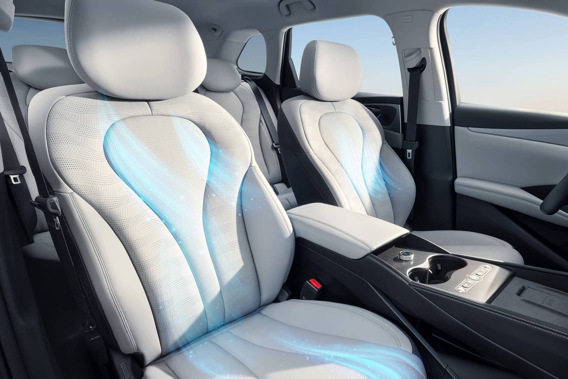 ที่ชาร์จมือถือไร้สายกำลัง 50W พร้อมปุ่มควบคุมการทำงานของจอสัมผัส ช่องเก็บของหลายจุด มาพร้อมที่วางแก้วขนาดใหญ่ 2 จุด พอร์ตชาร์จ USB Type C 2 จุด และ Type A 2 จุดและภายในปรับโทนสีภายในเป็นสีดำผสมสีครีมเน้นความล้ำสมัย เบาะนั่งทรงสปอร์ต หุ้มหนังอย่างประณีต มีช่องเก็บของหลายจุดสามารถวางแก้วน้ำ เบาะนั่งคู่หน้าปรับไฟฟ้า 6 หรือ 8 ทิศทางสำหรับคนขับและ 4 ทิศทางสำหรับคนนั่งแบบปรับธรรมดาหรือไฟฟ้า พร้อมระบบความจำสำหรับเบาะคนขับ พร้อมระบายอากาศและอุ่นเบาะได้ เบาะหลังพับได้แบบ 60/40 มีพื้นที่ 670 ลิตร กรณีไม่พับเบาะและถ้าพับเบาะมีพื้นที่ 1,535 ลิตร