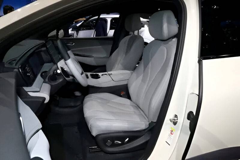 ส่วนภายในห้องโดยสารผู้ขับขี่จะพบกับหน้าจอสัมผัสแบบหมุนขนาด 15.6 นิ้วตรงกลาง พร้อมด้วยแผงหน้าปัดดิจิทัลและฟีเจอร์ระดับพรีเมียม เช่น การชาร์จแบบไร้สาย 50W และเบาะนั่งด้านหน้าแบบระบายอากาศ/ปรับอุ่น ระบบช่วยเหลือผู้ขับขี่ขั้นสูงของรถประกอบด้วยเซ็นเซอร์ 29 ตัวเพื่อให้ครอบคลุมความปลอดภัยอย่างครอบคลุม