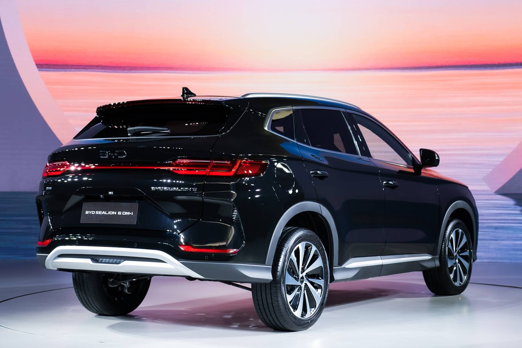 ไฟท้าย LED ที่วางแบบเต็มท้ายรถพร้อมระบบไฟฟ้าเปิด-ปิดแบบ One-touch ในรุ่น Dynamic และ Premium AWD ติดตั้งดิฟฟิวเซอร์มาให้พร้อมไฟถอยหลังใต้กันชนและไฟทับทิมซ้าย-ขวา มีคำว่า BYD บนฝาท้ายรถและล้อสีทูโทนดีไซน์เอกลักษณ์ ขนาด 19 นิ้ว พร้อมยางจากค่าย Giti ขนาด 235/50R19 ตัวรถมาในร่างเอสยูวีไซซ์ใหญ่ D-Segment ตั้งแต่