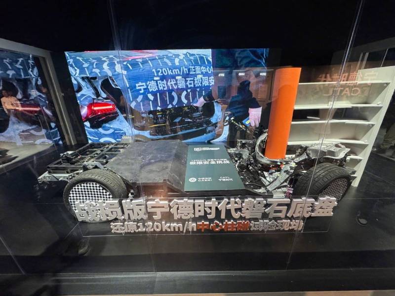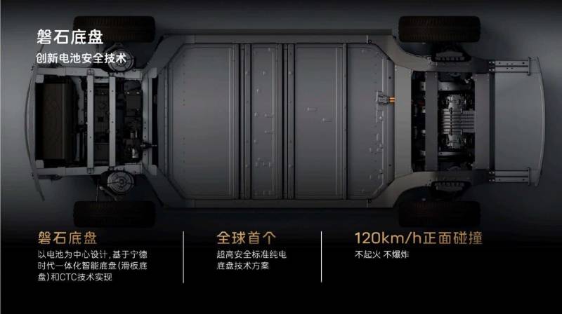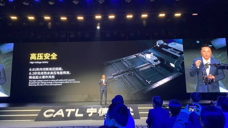 เพื่อความปลอดภัย CATL ได้ให้ความสำคัญกับชิ้นส่วนที่เกี่ยวข้องกับแชสซี 3 ส่วน ได้แก่ เซลล์แบตเตอรี่โครงสร้างและระบบแรงดันไฟฟ้าสูง จากวิดีโอสาธิตการชนด้านหน้าของรถทดสอบเข้ากับกำแพงด้วยความเร็ว 120 กม./ชม. โปรดทราบว่าในการทดสอบ C-NCAP ในปัจจุบัน การชนดังกล่าวเกิดขึ้นที่ความเร็ว 56 กม./ชม. ซึ่งหมายความว่าการชนด้านหน้าหรือแนวเสาที่ความเร็ว 120 กม./ชม. จะทำให้พลังงานการชนเพิ่มขึ้น 4.6 เท่า