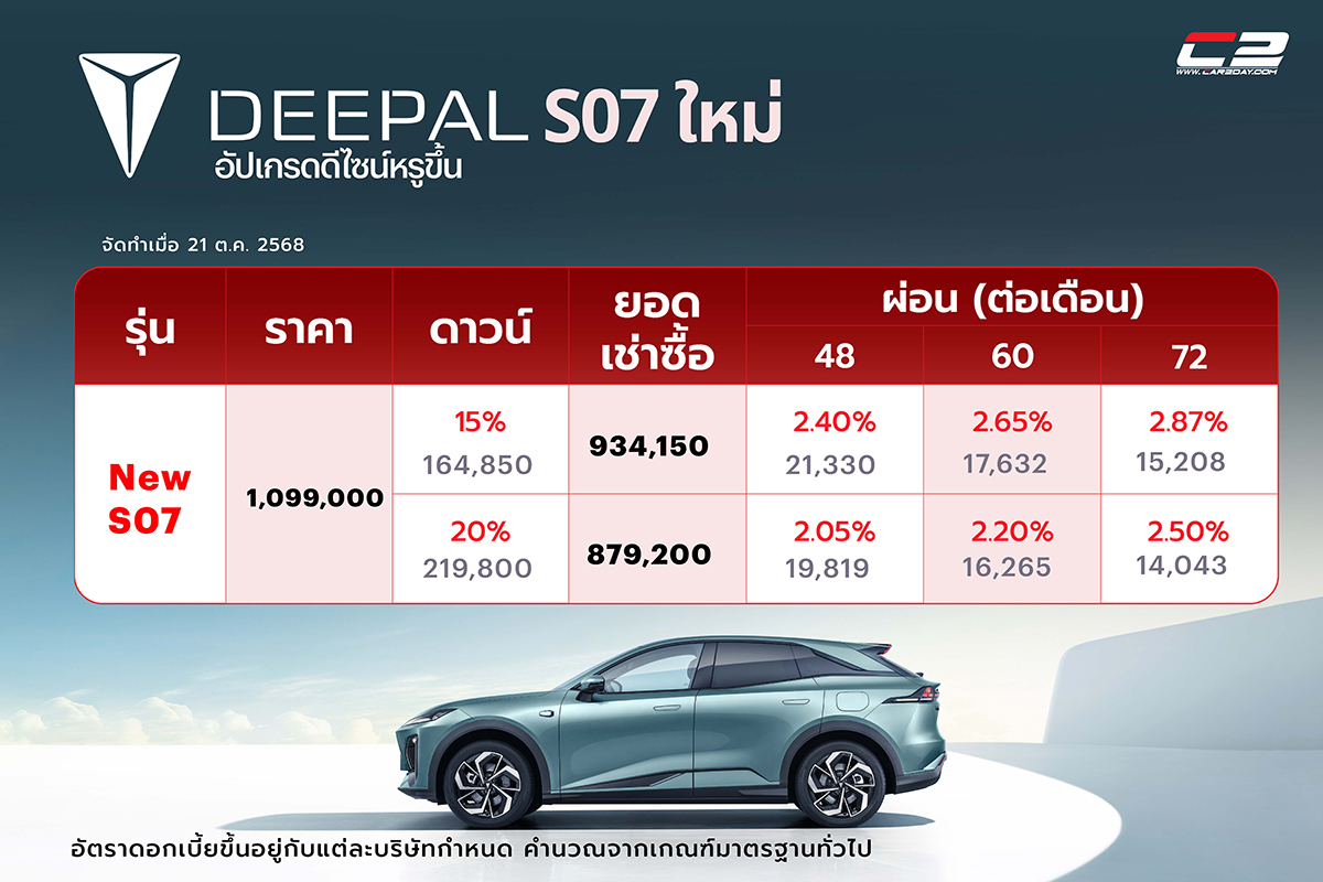 ตารางผ่อน ดาวน์ Deepal S07 ใหม่ อัปเกรดดีไซน์หรูขึ้น ผ่อนเริ่มต้น 14,xxx บ.