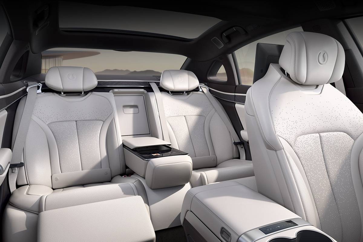 จอแสดงข้อมูลการขับขี่เหนือคอนโซลหน้าหรือ HUD พร้อมจอแสดงควบคุมระบบปรับอากาศด้านหลัง พวงมาลัยมัลติฟังก์ชัน 4 ก้านปาดล่างแบบ flat-bottomed คอนโซลกลางมีหัวคันเกียร์ไฟฟ้าเป็นคริสตัลติดตั้งที่ชาร์จสมาร์ตโฟนชาร์จจุใจถึง 2 เครื่อง กำลังชาร์จ 50 W