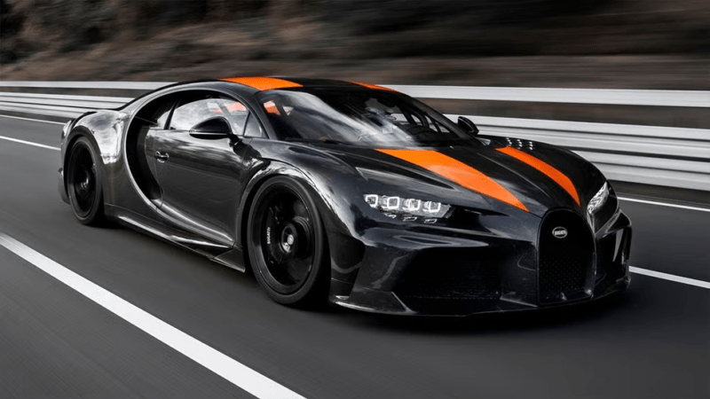 แบรนด์รถยนต์ที่ตั้งใจจะท้าชนอย่าง Bugatti Chiron เป็นรถสปอร์ตสองที่นั่งเครื่องวางกลางที่พัฒนาโดย Bugatti Engineering ซึ่งเป็นรุ่นที่มาแทน Veyron โดยเครื่องยนต์ของ Chiron มีกำลังสูงสุด 1,103 kW (1,479 แรงม้า) และแรงบิด 1,600 นิวตัน-เมตร ความเร็วสูงสุดถูกจำกัดไว้ที่ 420 กม./ชม. ด้วยเหตุผลด้านความปลอดภัย อย่างไรก็ตาม ในปี 2019 มีการนำ Chiron ที่ปรับแต่งพิเศษไปทำความเร็วสูงสุดได้ถึง 490.48 กม./ชม.