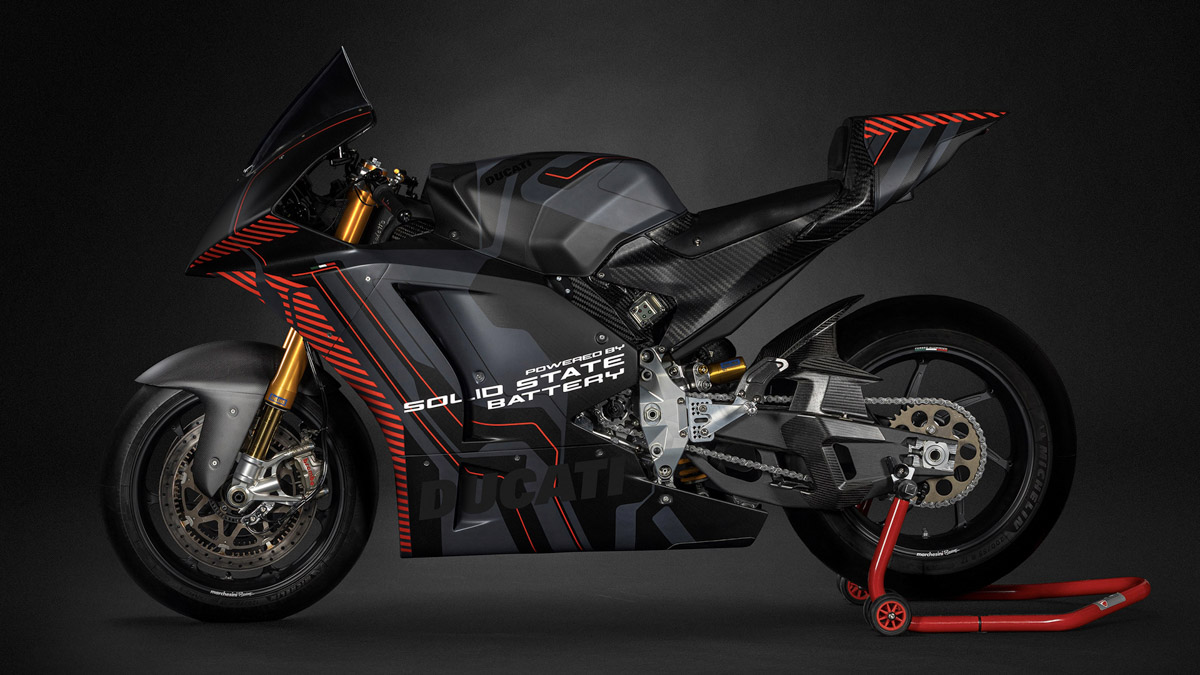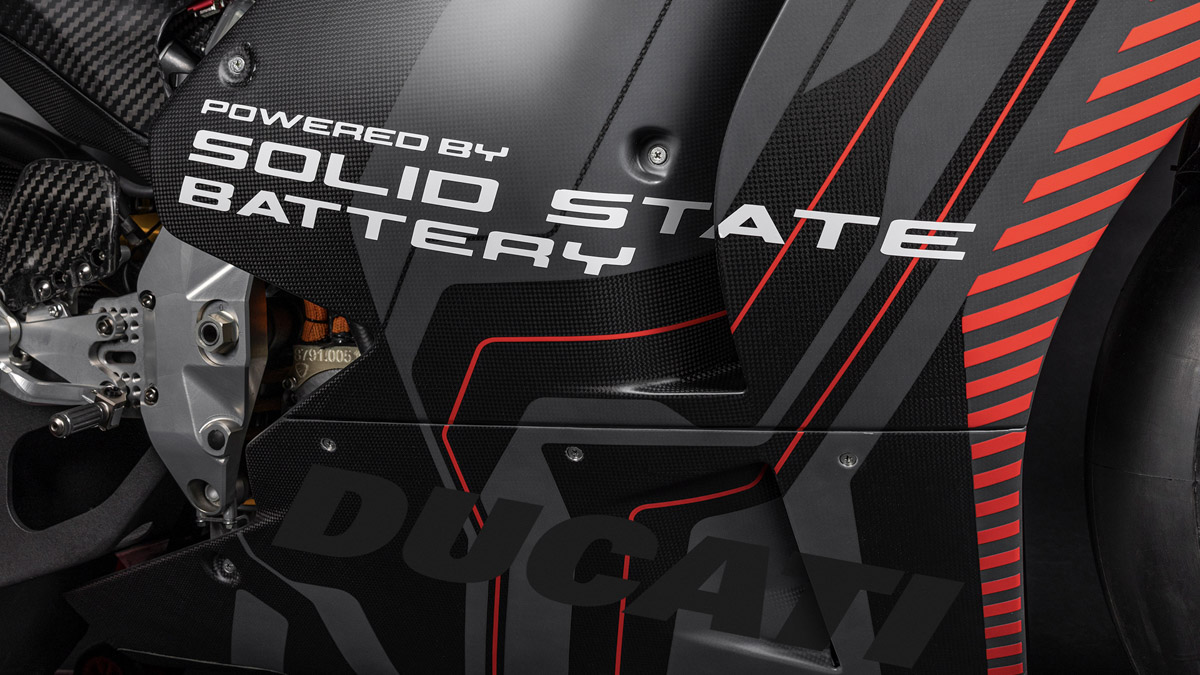 นับเป็นก้าวใหม่ของการวิจัยทางเลือกอื่นนอกเหนือจากระบบสันดาปภายใน เมื่อ ดูคาติ เผยโฉมต้นแบบซูเปอร์ไบค์ไฟฟ้าสำหรับการแข่งขัน V21L รุ่นแรกที่ติดตั้งแบตเตอรี่แบบโซลิดสเตต ซึ่งจัดแสดงที่งาน IAA Mobility ในเมืองมิวนิก โดยโครงการนี้กำลังได้รับการพัฒนาร่วมกับบริษัทในเครือโฟล์คสวาเกน กรุ๊ป ซึ่งรวมถึงอาวดี้ และพาวเวอร์โค