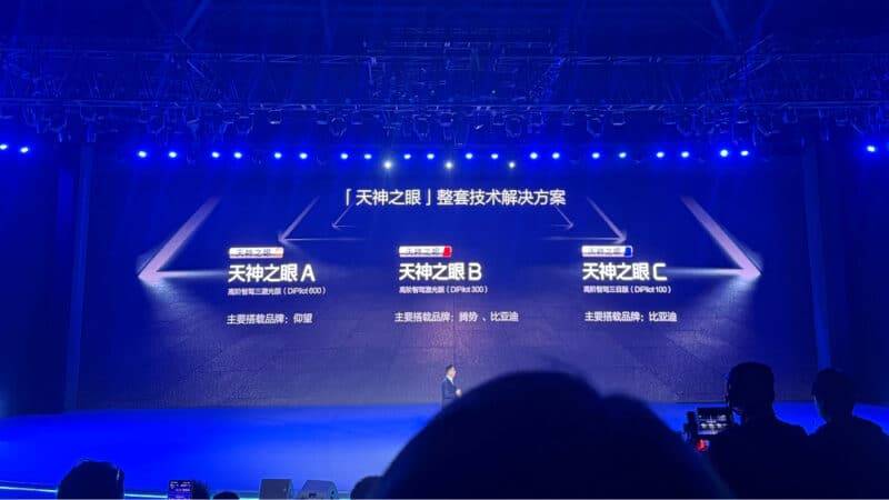 – ตราสัญลักษณ์สีแดงด้านหลัง หรือ Eye of God B (Dipilot 300) สำหรับแบรนด์ DENZA, BYD บางรุ่นบางรุ่นตระกูล Ocean และ Dynasty ประกอบด้วยฟังก์ชัน : ระบบนำทางในเมืองแบบไม่ต้องใช้แผนที่และที่จอดรถ e³ Laser LiDAR 1 หรือ 2 จุด, ชิปขับเคลื่อนอัจฉริยะ: Orin-X ตัวเดียว, พลังประมวลผลของชิป: 254 TOPS, จำนวนกล้อง 11 จุด หรือ 12 จุด,เรดาร์คลื่นมิลลิเมตร 5 จุด และ เรดาร์อัลตราโซนิก 12 จุด