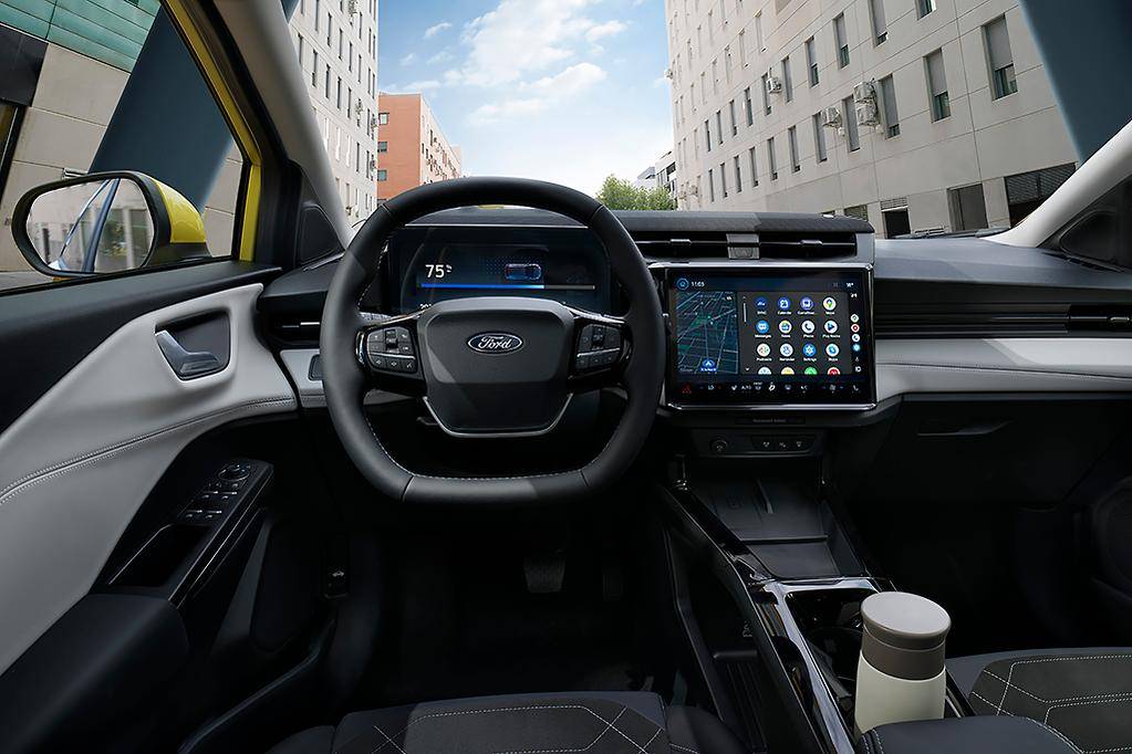 ภายในยกมาจากรุ่น PUMA สันดาปด้วยความทันสมัยและความบันเทิงด้วยจอสัมผัสขนาดใหญ่ 12 นิ้ว ระบบความบันเทิง SYNC 4 รองรับไร้สายทั้ง Android Auto และ Apple CarPlay แผงควบคุมปรับอากาศอัตโนมัติในจอ พร้อมมาตรวัดดิจิทัลใหม่ขนาดใหญ่ 12.8 นิ้ว พวงมาลัยมัลติฟังก์ชันสองก้านท้ายตัด บนชุดคอนโซลหน้าดีไซน์ใหม่เอี่ยมหุ้มหนังสัมผัสเดินด้ายประณีต คอนโซลกลางออกแบบใหม่ไร้คันเกียร์พร้อมช่องเก็บของใหม่และมีที่ชาร์จมือถือไร้สาย