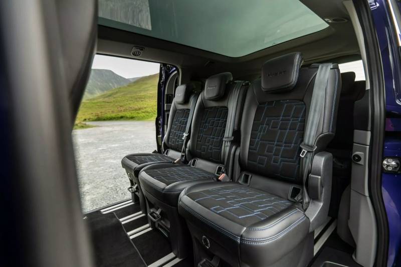 เวอร์ชัน 8 ที่นั่งของ Transit Custom ได้รับการปรับแต่งจาก MS-RT ตั้งแต่ปีที่แล้ว ทั้งชุดแต่งรอบคัน, กันชนสปอร์ต, สปอยเลอร์หน้า-หลัง และสปอยเลอร์หลังคาขนาดใหญ่ที่ได้แรงบันดาลใจจาก Ford Supervan ส่วนภายใน เบาะหน้ามีปีกข้างที่กระชับขึ้น และทั้ง 3 แถวใช้เบาะหนังและหนังกลับพร้อมการเย็บตะเข็บสีน้ำเงิน