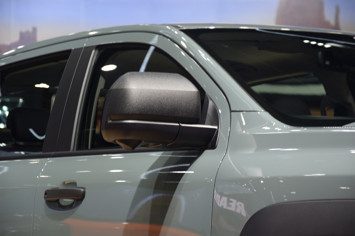ด้านข้างออกแบบใหม่ตั้งแต่คิ้วขอบล้อสีดำทรงเหลี่ยม กระจกมองข้างพร้อมไฟเลี้ยวทรงโตกว่าเดิม บันไดข้างใหม่สีดำสุดเข้ม บันไดข้างดีไซน์เข้ม ไฟท้ายสีขาวแดง LED พร้อมไฟเบรกดวงที่ 3 ที่เหยียบข้างกระบะท้ายกับกันชนหลังติดมาให้จากโรงงานและล้อเหล็กดีไซน์เฉพาะขนาด 18 นิ้ว น็อตล้อ 8 รู พร้อมยาง AT จาก General Grabber 275/70 R18 มิติตัวถังดังนี้