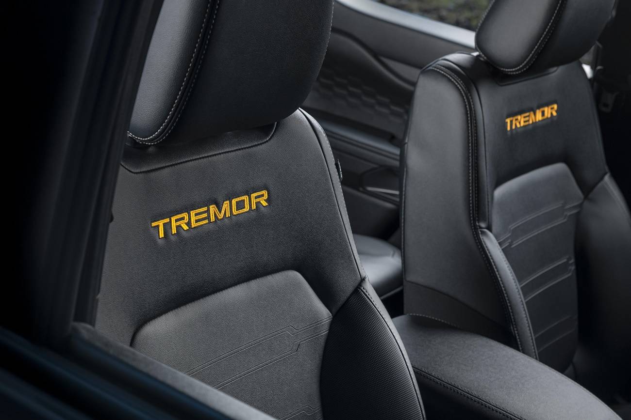 พร้อมระบบ FordPass ช่องต่อ USB 4 จุด กับมาตรวัดดิจิทัลแบบสี 8 นิ้ว กุญแจรีโมทอัจฉริยะพร้อมปุ่มสตาร์ทรถอัตโนมัติ ระบบปรับอากาศแบบอัตโนมัติแยกอิสระซ้าย-ขวาและปรับอากาศสำหรับผู้โดยสารตอนหลัง กระจกมองหลังแบบปรับลดแสงอัตโนมัติ พร้อมช่องต่อ USB ที่ชาร์จมือถือไร้สาย Wireless Charging เบรกมือไฟฟ้าพร้อมระบบ Auto Hold เบาะนั่งหุ้มเบาะผ้าผสมไวนิลแบบกันน้ำสีเทาเข้ม Medium Dark Urban Grey ปักโลโก้ Tremor สีส้มในตัวเบาะด้านคนขับปรับด้วยระบบไฟฟ้า 8 ทิศทาง