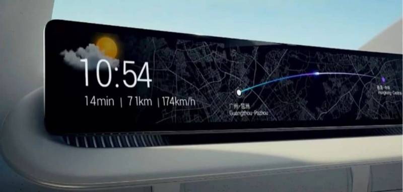 ส่วนหน้าห้องโดยสารมีจอแสดงข้อมูลนำทางแบบยาว