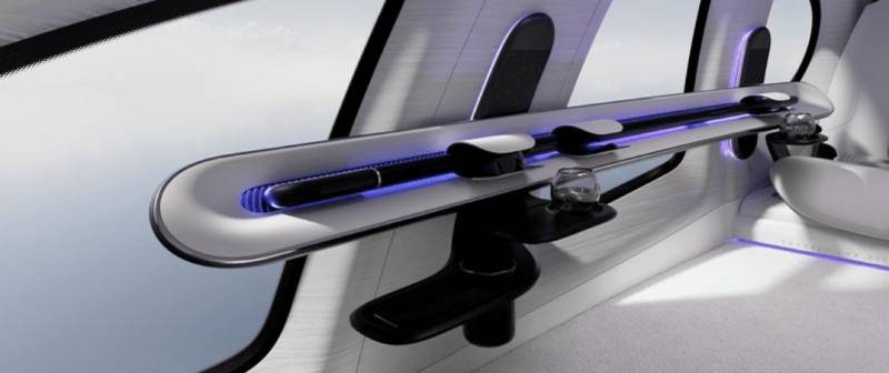 นอกจากนี้ ยังมี “ศูนย์กลางความสะดวกสบายแบบปรับได้” ยาวๆ อยู่ที่ด้านข้างห้องโดยสาร ซึ่งมีที่วางแขน ลำโพง ที่วางแก้ว ไฟส่องสว่างรอบห้องโดยสาร และการชาร์จโทรศัพท์มือถือแบบไร้สาย คล้ายกับห้องโดยสารของรถยนต์