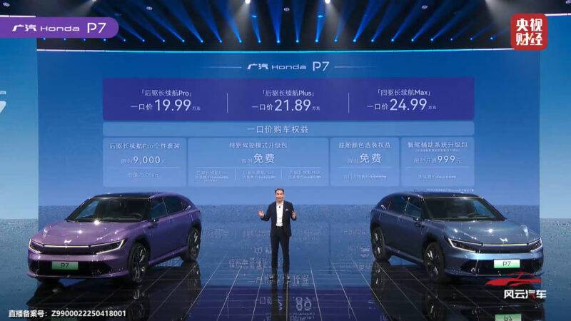 GAC Honda P7 เข้าสู่ตลาดด้วยกลยุทธ์ด้านราคาที่ก้าวร้าว โดยราคาของรถรุ่นนี้อยู่ที่ 199,900 – 249,900 หยวน หรือประมาณ 905,000 – 1,130,000 บาท