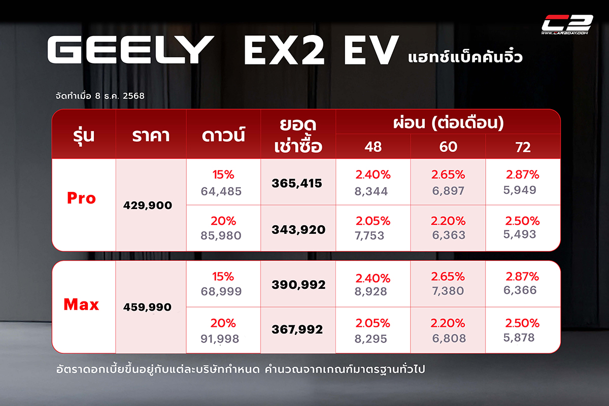 ตารางผ่อน ดาวน์ Geely EX2