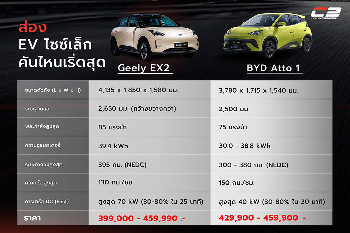 ตารางเปรียบเทียบ: Geely EX2 vs BYD Atto 1