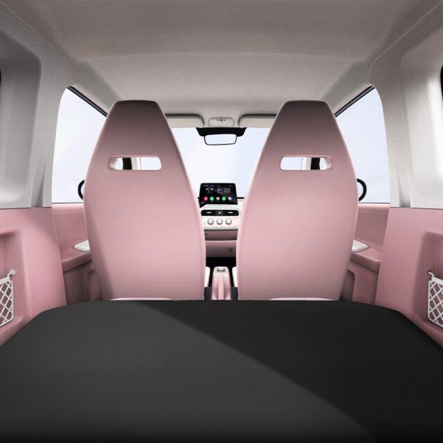 ดีไซน์ห้องคนขับน่ารักด้วยโทนสีชมพูพร้อมพวงมาลัยแบบก้านคู่ แผงหน้าปัด LCD ขนาด 5 นิ้ว และหน้าจอควบคุมส่วนกลางของรถขนาด 9 นิ้ว ปุ่มทางกายภาพแบบลูกบิดจะยังคงอยู่ใต้หน้าจอควบคุมส่วนกลาง