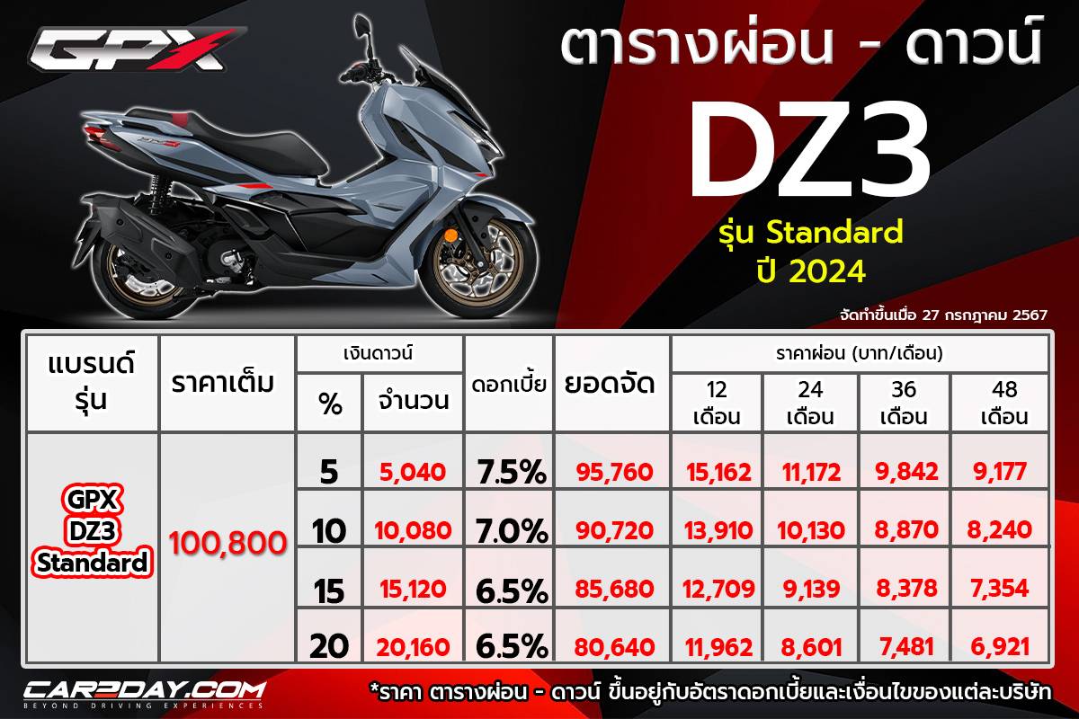 ตารางผ่อน GPX DZ3 ปี 2024 ทุกรุ่นย่อย