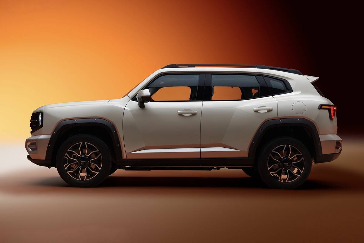ด้านข้างดุดันโค้งมนออกเป็นสองส่วนได้อย่างเหมาะเจาะทั้งกระจกมองข้างทรงสปูน คิ้วขอบล้อสีดำ ราวหลังคาสีเงินทรงกลมกลืนกับหลังคารถ หลังคาพาโนรามิกซันรูฟ ไฟท้าย LED ออกแบบทรงกลมพร้อมเส้นแนวนอนขอบบน เพิ่มระดับการมองเห็นและสามารถขยายขอบเขตการมองเห็นได้มากขึ้นอีกด้วย พร้อมตรา GWM ขนาดใหญ่และกรอบป้ายทะเบียนทูโทนสีเดียวกับตัวรถขอบโครเมียม ล้ออัลลอยลายเท่ทูโทนขนาด 19 นิ้ว พร้อมยาง 235/60 R19 และคิ้วขอบล้อสีดำติดหมุดบริเวณขอบล้อ