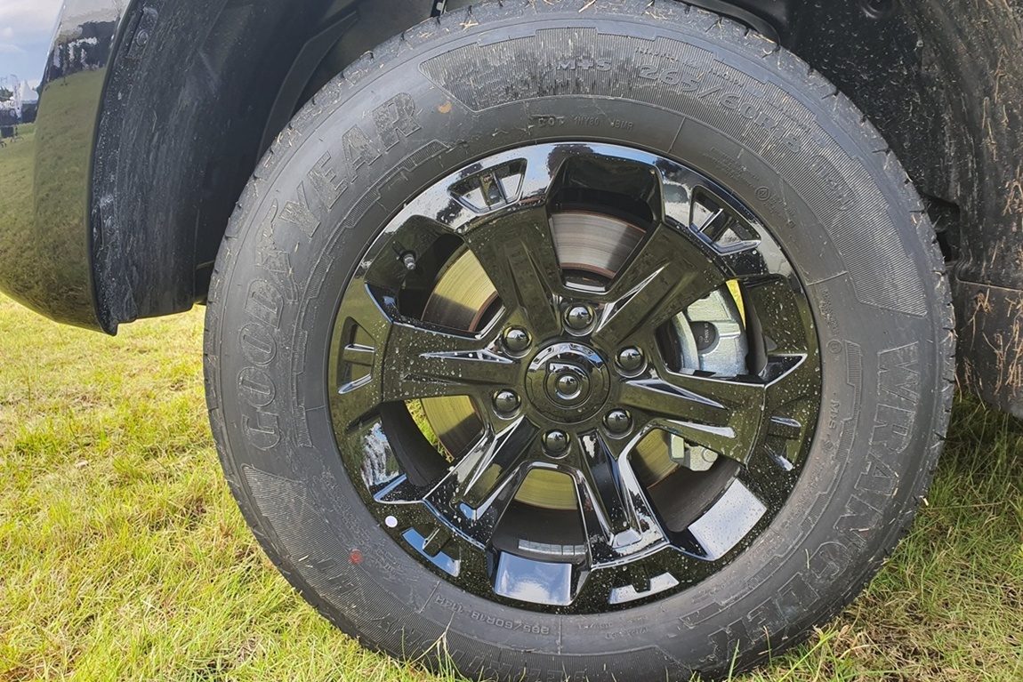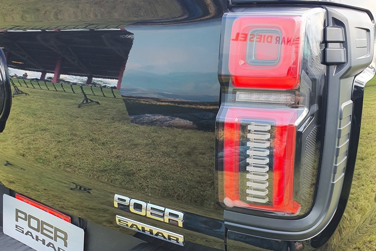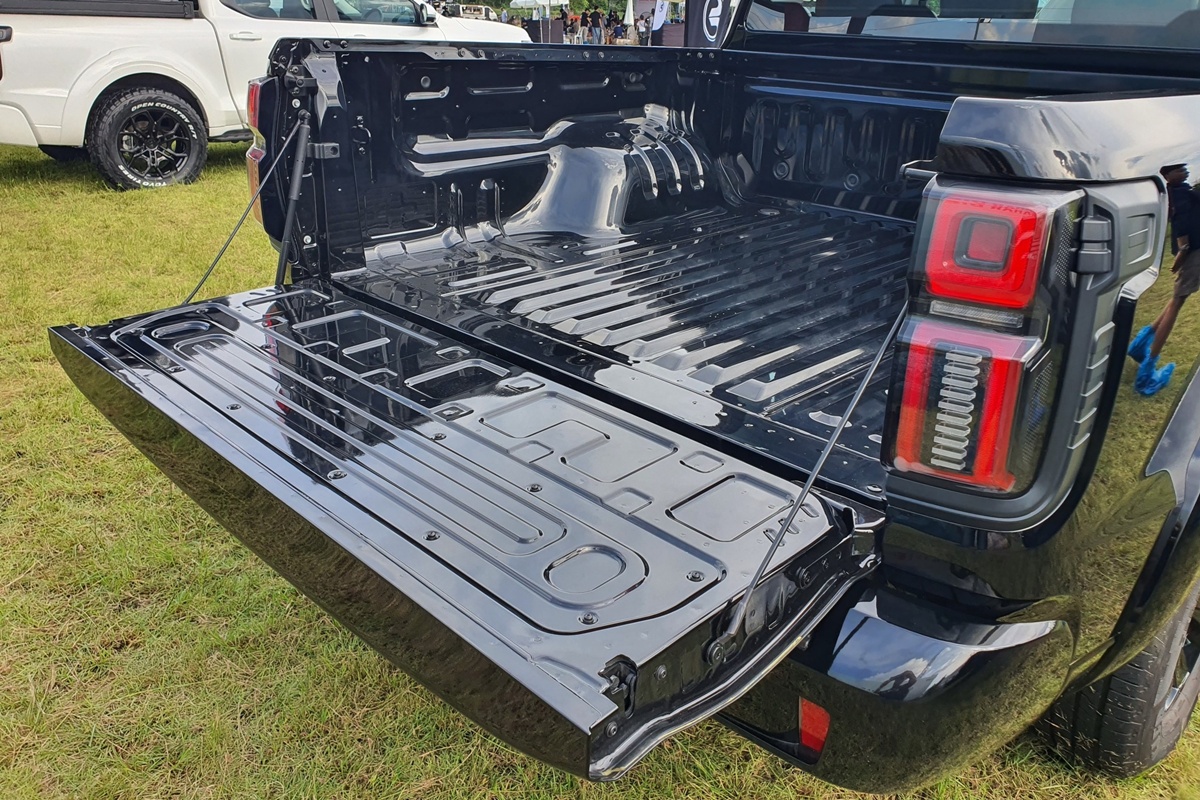 ด้านหลังเรียบง่ายด้วยไฟท้าย LED ทรงเท่ กระบะท้ายอาจไม่มีที่เปิดประตูท้ายสองรูปแบบทั้งเปิดทั้งบานลงมาหรือเปิดแบบตู้กับข้าวซ้าย-ขวา ควบคุมง่ายเพียงปลายนิ้วด้วยระบบสัมผัสและพื้นปูกระบะและจุดยึดสำหรับการผูกเชือกที่มากถึง 18 จุด ล้ออัลลอยมาในขนาด 18 นิ้ว พร้อมยาง 265/60 R18 สีดำเข้ม