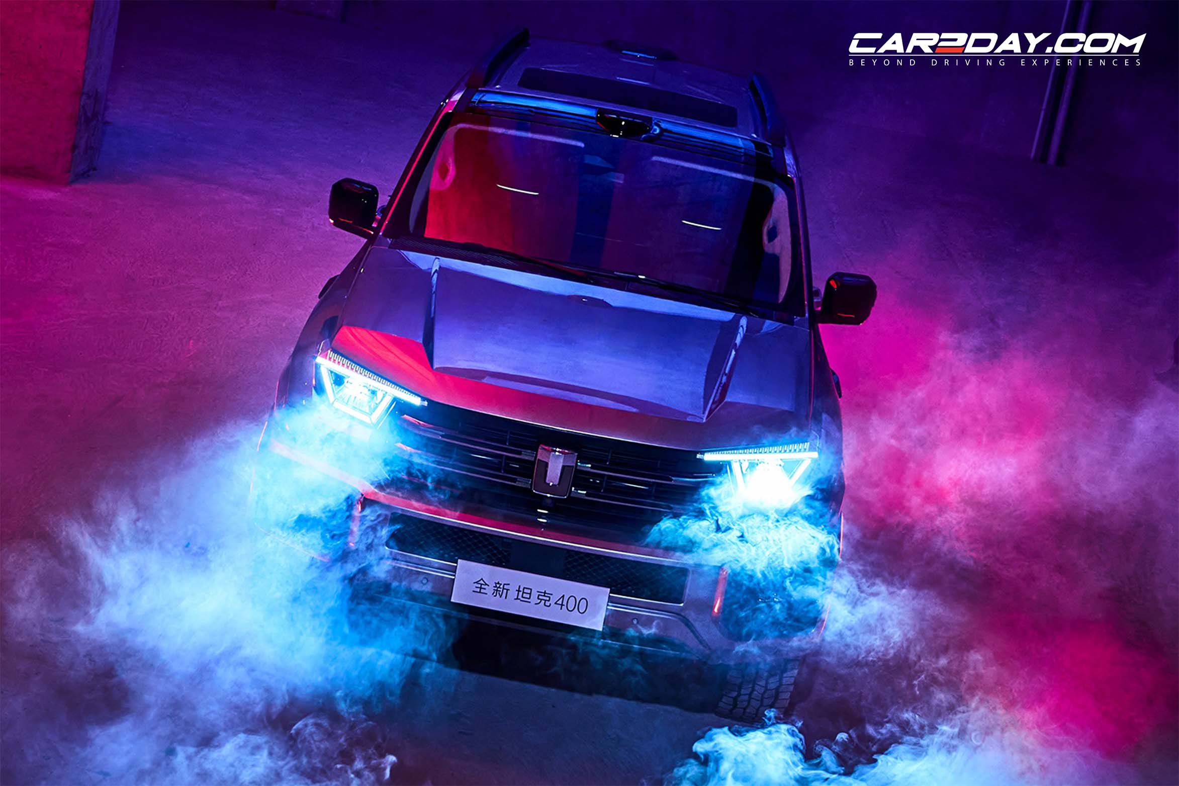 พร้อมตราสัญลักษณ์ GWM TANK อยู่ด้านบนฝั่งซ้าย และ ชื่อ “Great Wall Motors ภาษาจีน อยู่ฝั่งขวาด้านบน โดย TANK 400 อยู่ด้านล่างฝั่งซ้ายและ Hi4-T/Hi4-Z ด้านล่างฝั่งขวา พร้อมกันชนหลังออกแบบใหม่ มีกรอบแผงทับทิมสีแดงทรง 5 เหลี่ยมดูลงตัวมากขึ้น