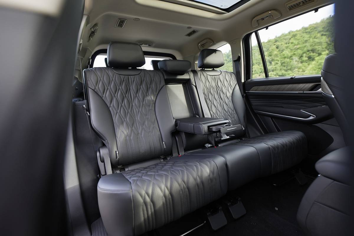 เบาะนั่งโดยสารแถวที่ 2 ปรับการใส่วัสดุโฟม เพื่อเพิ่มความนุ่มสบายในการนั่งให้มากยิ่งขึ้น พร้อมหน้าจอควบคุมระบบระบายอากาศและเบาะระบายอากาศอีกระดับของความสบายด้วยที่พักแขนตอนกลาง ม่านบังแดด และช่องปรับอากาศสำหรับผู้โดยสารด้านหลัง เบาะนั่งโดยสารแถวที่ 3 พร้อมพนักพิงปรับด้วยมือไม่พับไฟฟ้า เพิ่มความสะดวกด้วยตำแหน่งปรับพนักพิงบริเวณข้างประตูผู้โดยสารแถวที่ 2 และประตูท้าย