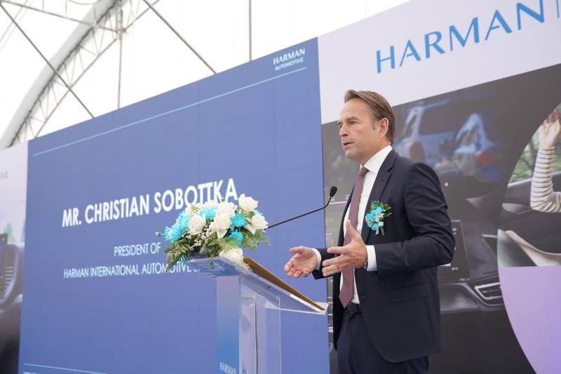 คุณ Chistian Sobottka ตำแหน่ง President ของ HARMAN Automotive พร้อมด้วยผู้นำอาวุสโสของ HARMAN เข้าร่วมพิธีเพื่อเฉลิมฉลองการเริ่มต้นการก่อสร้างโรงงานใหม่แห่งนี้ ร่วมกับ คุณ พิมพ์ภัทรา วิชัยกุล รัฐมนตรีว่าการกระทรวงอุตสาหกรรม และคณะ พร้อมทั้งพูดคุยเกี่ยวกับประโยชน์ทางเศรษฐกิจ นวัตกรรม และการทำงานร่วมกันเพื่อสร้างการเติบโต ภายหลังการเปิดโรงงานผลิตแห่งใหม่ของ HARMAN