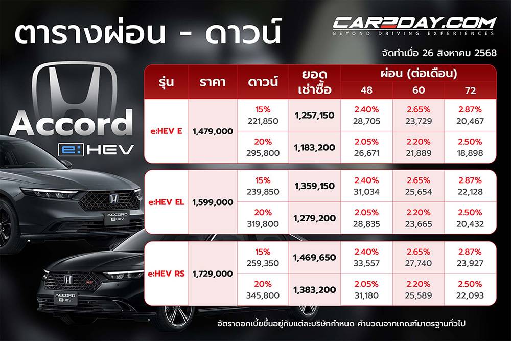 ตารางผ่อน ดาวน์ Honda Accord e:HEV ใหม่
