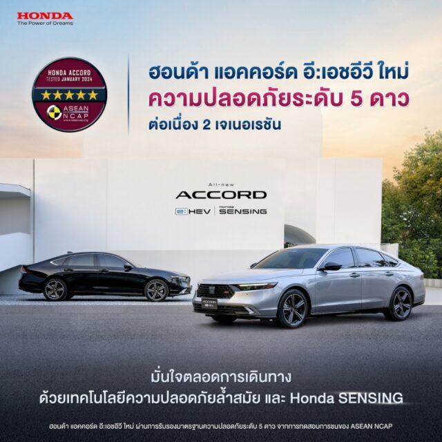 ฮอนด้า แอคคอร์ด อี:เอชอีวี ใหม่ เจเนอเรชันที่ 11 ผ่านการรับรองมาตรฐานความปลอดภัยระดับ 5 ดาว จากการทดสอบการชนของ ASEAN NCAP