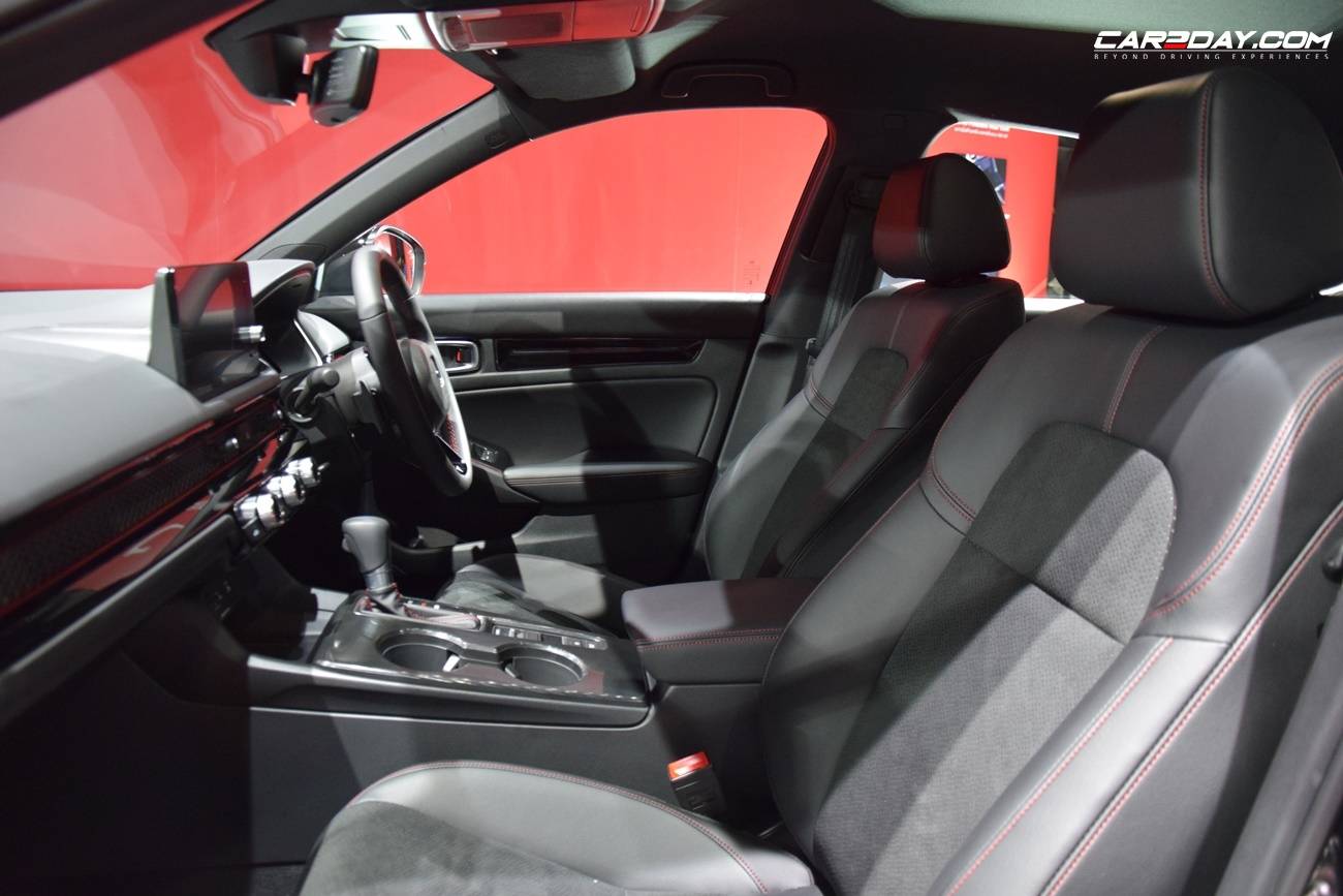 ยกระดับความสปอร์ตภายในห้องโดยสาร รุ่น e:HEV RS เบาะที่นั่งลายใหม่ Prime smooth ด้วยวัสดุเบาะหนังกลับและหนังสังเคราะห์สีดำตกแต่งด้วยด้ายสีแดง อีกทั้งตกแต่งแผงคอนโซลหน้าและแผงประตูด้านข้างสีแดงสไตล์สปอร์ต ไฟส่องสว่างตกแต่งแผงประตูคู่หน้าและที่เท้า แป้นเหยียบคันเร่งและเบรกแบบสปอร์ต มาตรวัดพร้อมหน้าจอแสดงข้อมูลการขับขี่แบบ TFT ขนาด 10.2 นิ้ว ช่องปรับอากาศสำหรับผู้โดยสารตอนหลัง ระบบปรับอากาศอัตโนมัติแบบปรับอุณหภูมิแยกอิสระซ้าย-ขวา