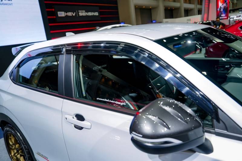 ฮอนด้า เอชอาร์-วี อี:เอชอีวี (รุ่น e:HEV EL) กับชุดแต่ง MUGEN รอบคัน ยกระดับความแกร่งสไตล์สปอร์ตในแนวคิด ‘Sporty Energize with Aggressive Styling’ จัดเต็มรอบคันทั้งภายนอกและภายใน ผสานความไดนามิกและสปอร์ตแกร่งไว้อย่างลงตัว