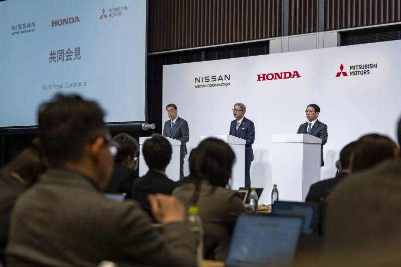 Honda และ Nissan ประกาศอย่างเป็นทางการแล้วว่าจะจัดการเจรจาควบรวมกิจการเป็นบริษัทโฮลดิ้งเดียวในอีก 6 เดือนข้างหน้า ด้าน Mitsubishi ซึ่งเป็นพันธมิตรกับนิสสันอยู่แล้ว จะเข้าร่วมการเจรจานี้ด้วย หากประสบความสำเร็จ การควบรวมกิจการอาจเสร็จสิ้นภายในปี 2026 โดยคาดว่าฮอนด้าจะเสนอชื่อกรรมการส่วนใหญ่และประธานบริษัทใหม่ บริษัทที่ได้มาจะกลายเป็นบริษัทที่มีมูลค่า 5 หมื่นล้านดอลลาร์ ทำให้กลายเป็นผู้ผลิตรถยนต์รายใหญ่อันดับ 3 ของโลกตามปริมาณการขาย รองจาก Toyota และ VW Group