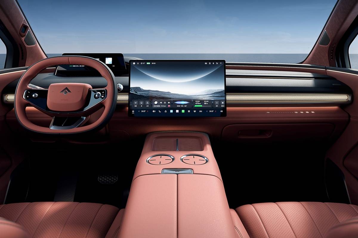 HYPTEC HLภายในสไตล์หรูด้วยห้องโดนยสารอัจฉริยะ ADIGO 6.0 smart cockpit  เริ่มที่คอนโซลหน้าดีไซน์เรียบง่ายพร้อมจอลอยตัว 2 ตัวเริ่มที่มาตรวัดความเร็วดิจิทัล LCD ขนาด 8.8 นิ้ว มีจอแสดงผลอินโฟเทนเมนต์ส่วนกลางขนาดใหญ่ 17.3 นิ้ว พร้อมจอแสดงข้อมูลการขับขี่เหนือแผงคอนโซลหน้า HUD ขนาด 27 นิ้ว แถมมีจอเพดานชัดแบบ 3K ขนาด 17.3 นิ้ว ประมวลการทำงานจอรวดเร็วด้วยชิป Qualcomm Snapdragon 8295P ผสานกับโมเดล AI DeepSeek-R1 เพื่อรับรู้การโต้ตอบสั่งงานด้วยเสียง