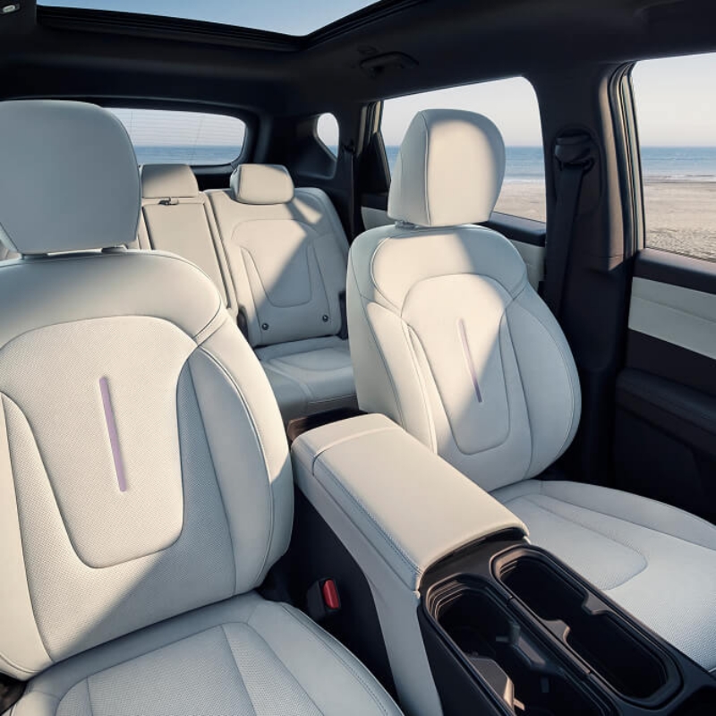 ภายในห้องโดยสาร โดดเด่นด้วย หน้าจอแสดงผลแบบรวมขนาด 27 นิ้ว ที่ประกอบด้วยหน้าจอควบคุมกลางขนาดใหญ่ และหน้าจอสำหรับผู้โดยสารด้านหน้า โดยมีความละเอียดระดับ 4K และความสว่างสูงถึง 1000 cd/m²