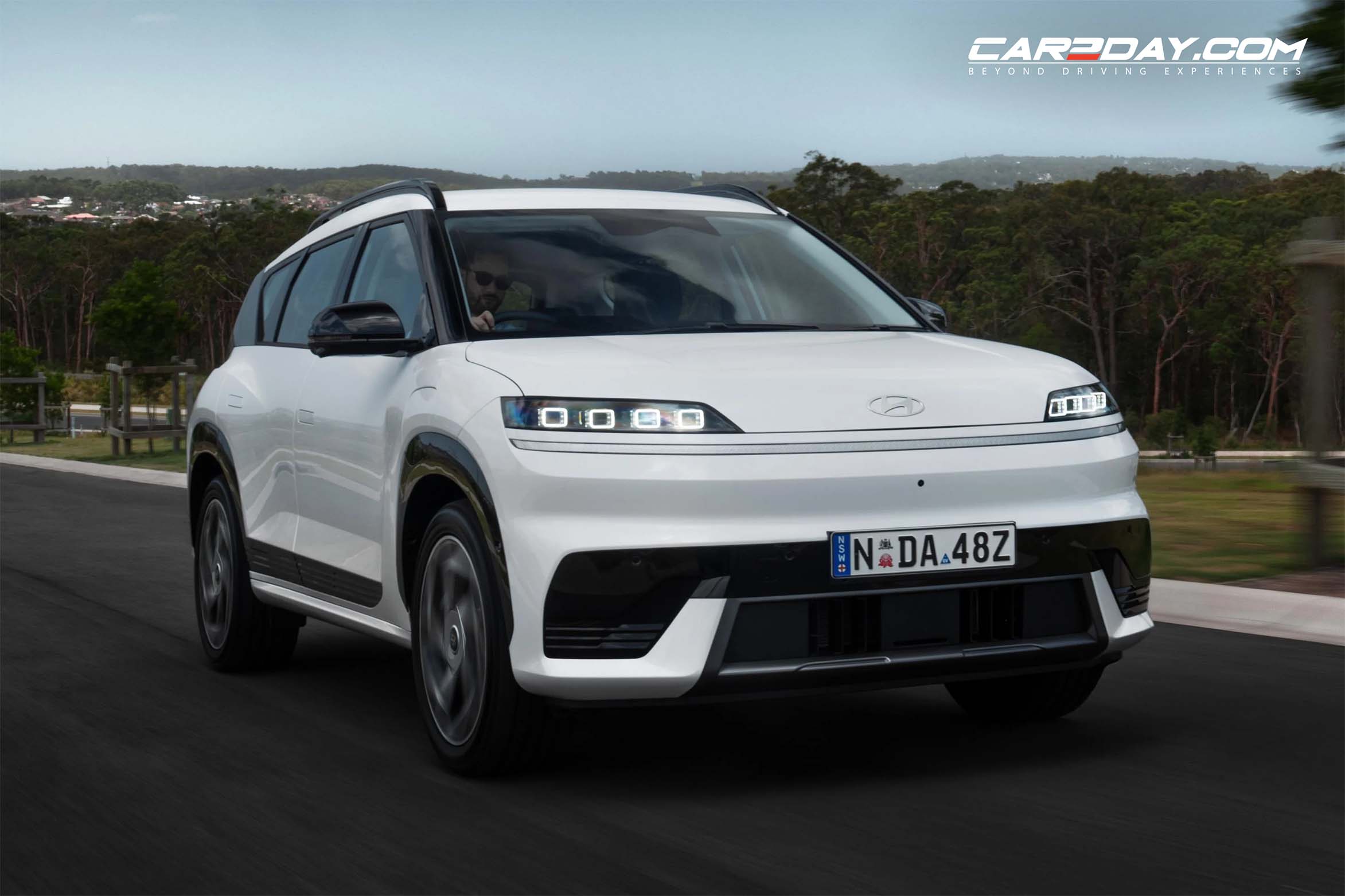 ด้านหลังสะท้อนถึงด้านหน้าที่มีหลังคาลอยที่มีรูปทรงเฉียงเป็นเอกลักษณ์บนเสา D พร้อมไฟท้าย LED รูปตัว U แนวยาว ครอบใต้กระจกหลังแบบทะลุและรูปลักษณ์เรียบง่าย เสริมด้วยที่ปัดน้ำฝนด้านหลังที่ซ่อนอยู่ โลโก้ Hyundai ถูกผสานเข้ากับกระจกหลัง