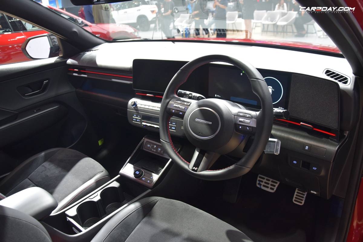 พวงมาลัยมัลติฟังก์ชันสามก้านหุ้มหนังดำเดินด้ายติดตราวงกลมสี่จุด และตรา N แผงหลังคาขึ้นรูปแบบกำมะหยี่สีดำทั้งแผง และชุดแป้นเบรกคันเร่งและที่พักเท้าสีเงินโลหะลายพิเศษพร้อมออปชันเดิมทั้งชุดหน้าจอขนาดใหญ่ 12.3 นิ้วประกอบด้วยชุดมาตรวัดดิจิทัลกับจอสัมผัสระบบความบันเทิง พร้อมลำโพง Bose 8 จุด ถัดลงมาเป็นช่องแอร์แนวยาวสองช่อง ไฟสร้างบรรยากาศ ambient light 64 สี คันเกียร์ทันสมัยแบบ Shift-by-Wire จอแสดงข้อมูลการขับขี่ Head Up Display และที่ขาร์จมือถือไร้สาย